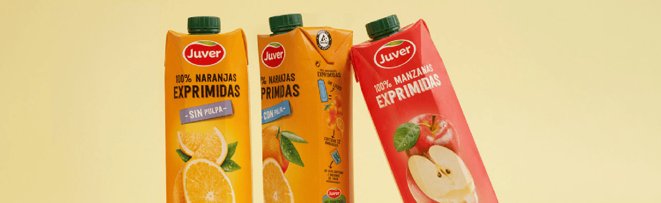 Juver 100% Pressed, made from a selection of the best quality fruit pressed to obtain all the natural flavour.